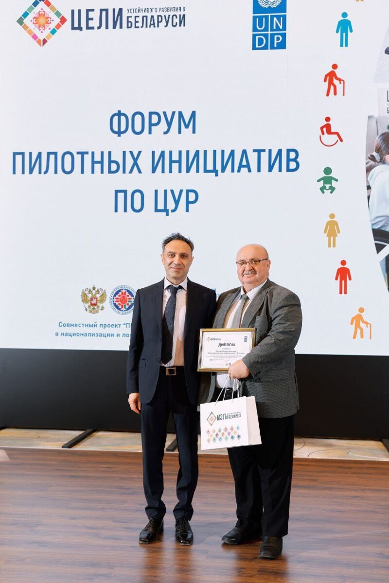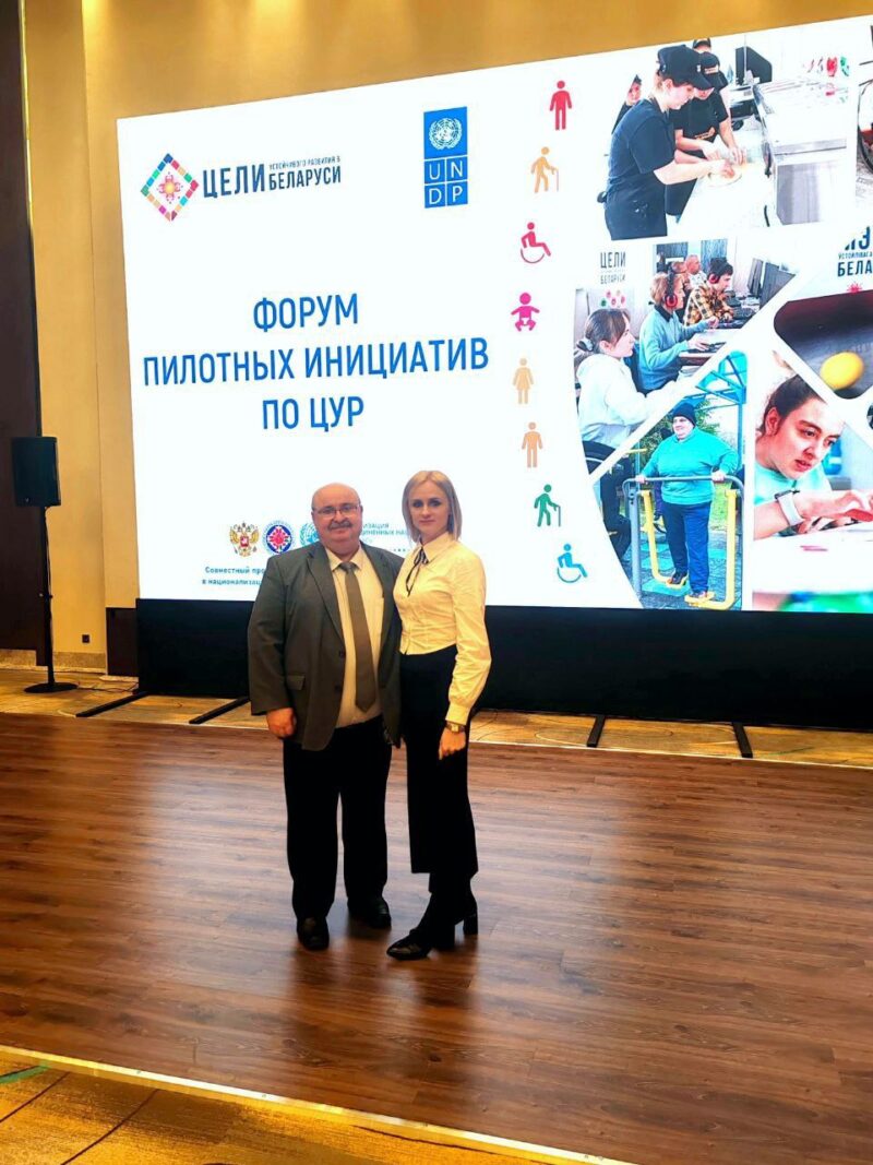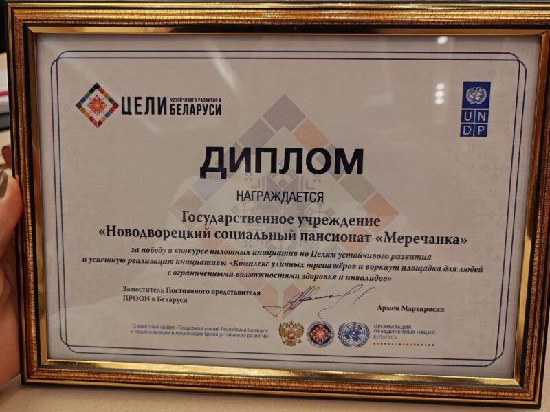 03 декабря 2025 года в г.Минске состоялся форум пилотных инициатив по Целям устойчивого развития, приуроченный ко Дню инвалидов, в котором приняли участие директор Новодворецкого социального пансионата «Меречанка» В.А. Сергеюк и координатор пилотной инициативы «Комплекс уличных тренажёров и воркаут площадка для людей с ограниченными возможностями здоровья и инвалидов», инструктор по трудовой терапии А.Н. Ненадович.