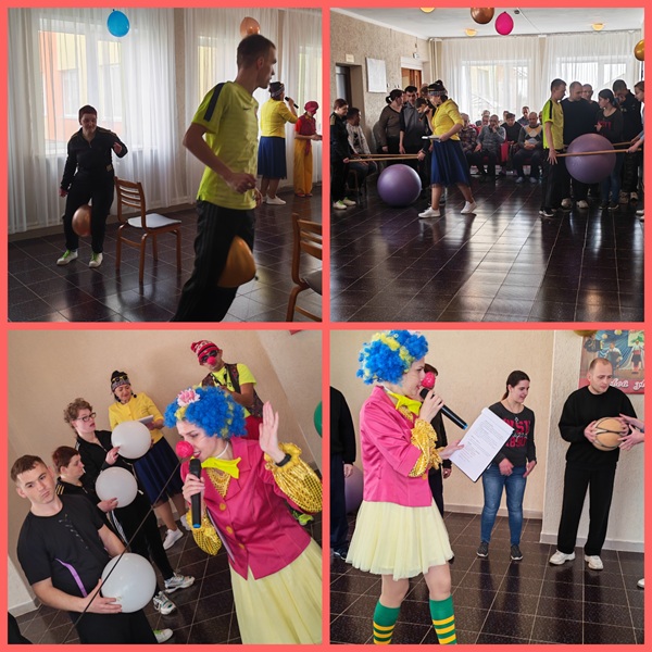 Мы провели спортивно-развлекательное мероприятие «День смеха и радости». К нам в гости заглянули озорные клоуны, которые никому не давали скучать! 🤡 Наши проживающие разделились на команды, соревновались в ловкости, много смеялись, корчили веселые рожицы🤭 и, конечно, много шутили. Атмосфера была та еще — позитив зашкаливал!